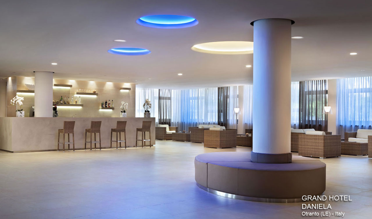 Il Grand Hotel Daniela di Otranto (LE) è una struttura alberghiera 4 stelle gestita dalla società “Alpitour World”, azienda leader nella gestione di importanti strutture localizzate sia in italia che all’estero. L’albergo dispone di 154 camere, 2 sale ristorante da 400 persone, 1 sala conferenza interne da 60 posti, una esterna da 450 posti, un bar nella hall e uno situato a bordo piscina Il Grand Hotel Daniela è stato completamente ristrutturato, mediante una restyling interno ed esterno dello Studio di Architettura A4IDeA, in tre stralci di cui è stata fatta la Direzione Lavori: